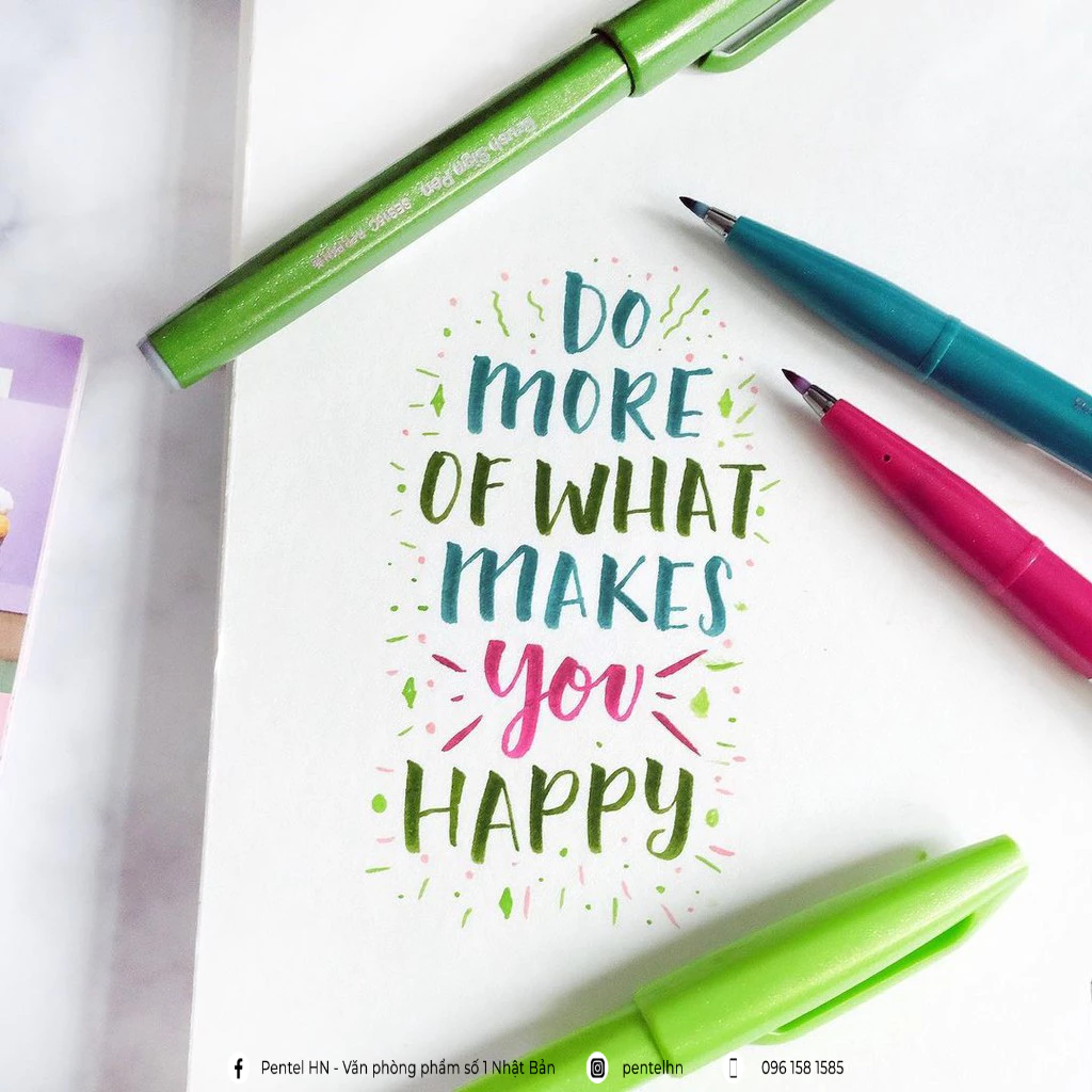 Một trong những ứng dụng phổ biến của thư pháp là trong việc thiết kế thiệp mời, trang trí sổ tay và tạo ra những món quà handmade. Với BÚT PENTEL TOUCH BRUSH SIGN PEN VIẾT CALLIGRAPHY THƯ PHÁP TRANG TRÍ, bạn có thể dễ dàng tạo ra những đường nét tinh tế và mềm mại cho các thiết kế của mình.