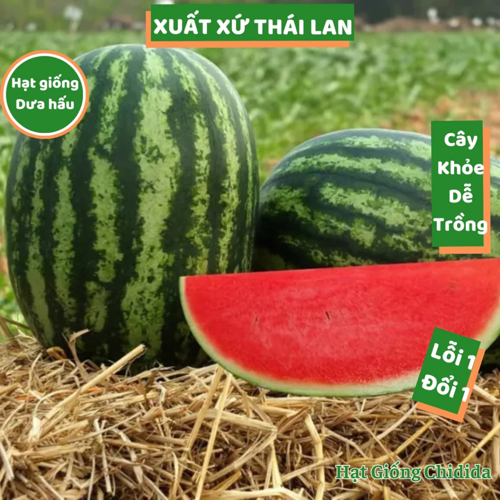 - Hạt giống dưa hấu Thái Lan F1 (Chidida): Quả to, thịt chắc, ngọt, chịu hạn tốt; giá vừa phải.