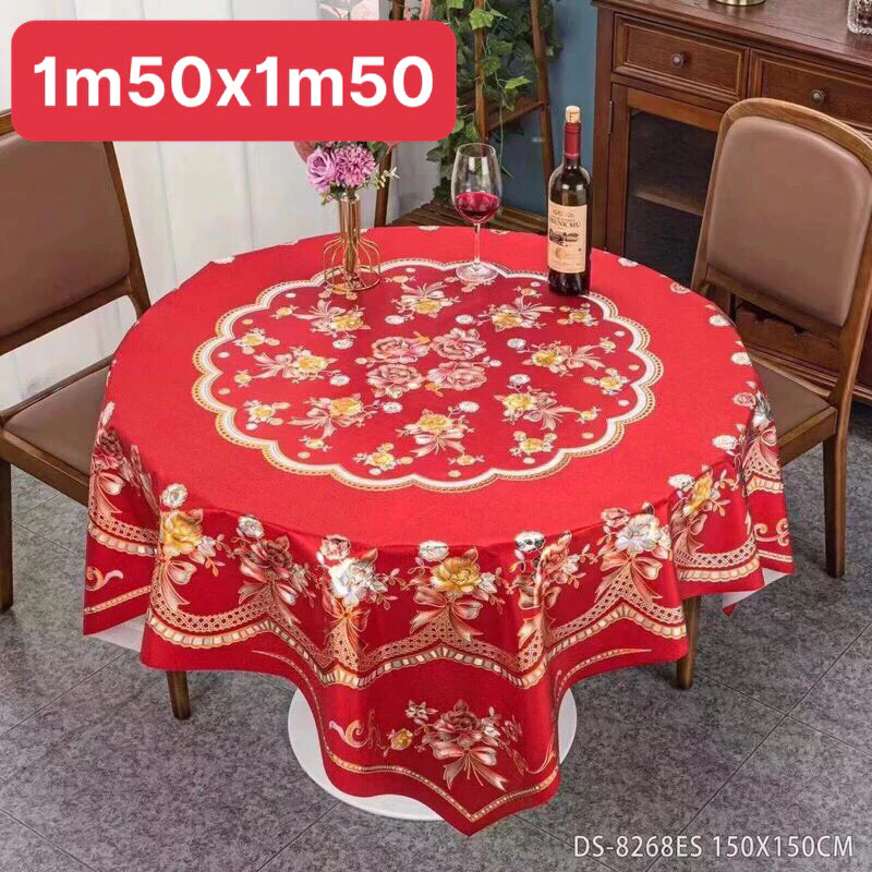 Khăn Trải Bàn Tròn Sang Trọng 1m5x1m5 Khăn 3D Chống Thấm Chống Bám Dầu Mỡ Tròn Hoạ Tiết
