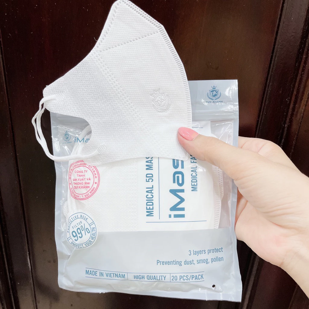 Một trong những thương hiệu khẩu trang 5D uy tín hiện nay là Duy Khánh. Khẩu trang 5D Duy Khánh được sản xuất với chất liệu tốt, có 5 lớp bảo vệ và thiết kế mỏng, nhẹ.