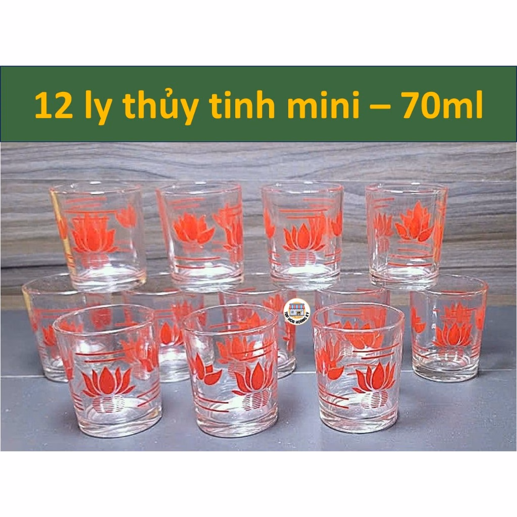🔥 Bộ 12 ly thủy tinh in họa tiết Hoa Sen, Quả Táo, Quả Dâu – 70ml đang giảm giá!