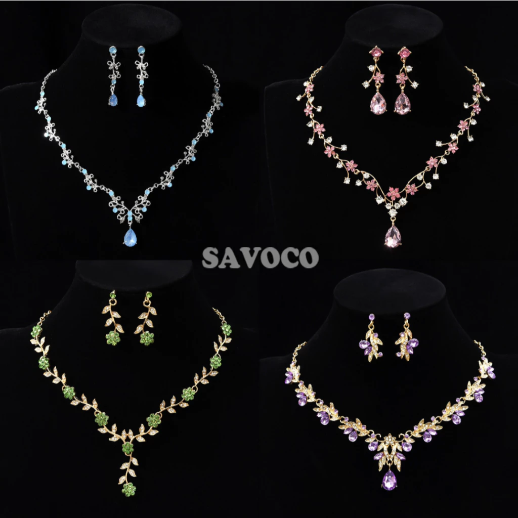 - Tên sản phẩm: Savoco Set Trang Sức Tiệc Cưới Cho Nữ Với Bông Tai Và Vòng Cổ Màu Sắc Đa Dạng, Hoa Văn Kẹp Tai Kim Cương Nhân Tạo