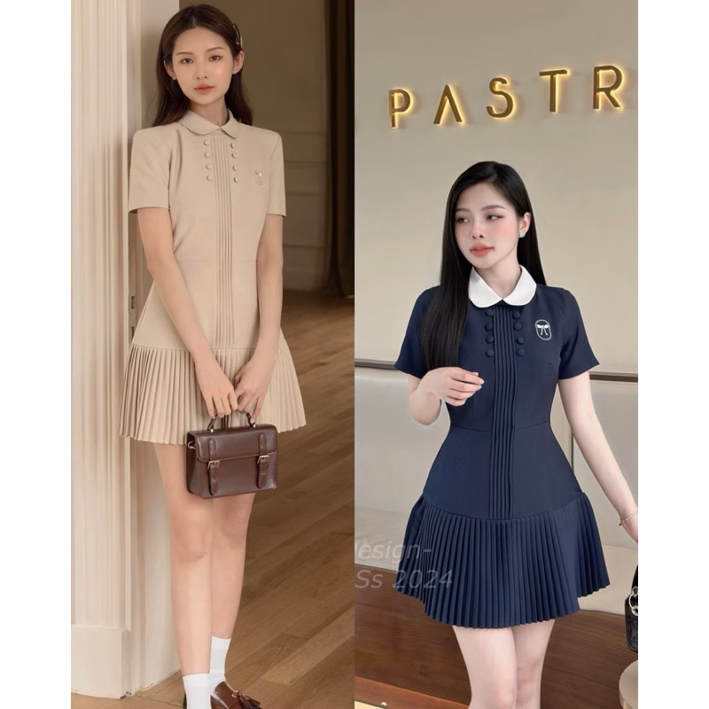 🔥 BỐNG T1 – Váy thiết kế thêu nơ cổ sen xếp ly cúc bọc dáng ngắn đang giảm giá!