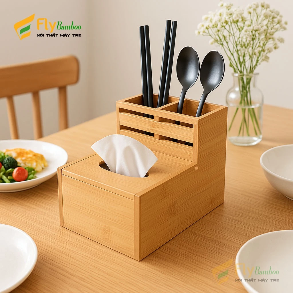 🔥 Hộp Đa Năng Đựng Thìa Đũa Bằng Gỗ Tre Cao Cấp Đựng Đũa, Muỗng, Giấy ăn, Gia Vị cho quán ăn, nhà hàng đang giảm giá!