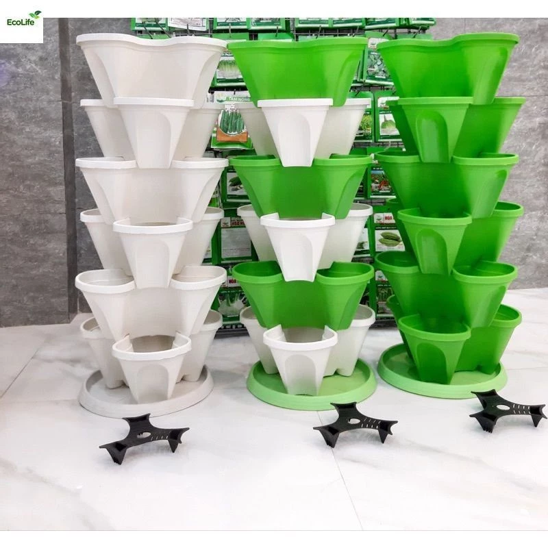 🔥 [6 chậu]Chậu tháp trồng rau, hoa thông minh có đĩa, chậu nhựa xếp trồng rau sạch 6 tầng Ecolife đang giảm giá!