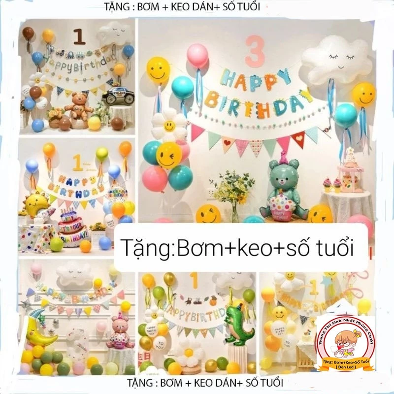 - Bóng bay, keo dán, số tuổi và nhiều mẫu mã khác
