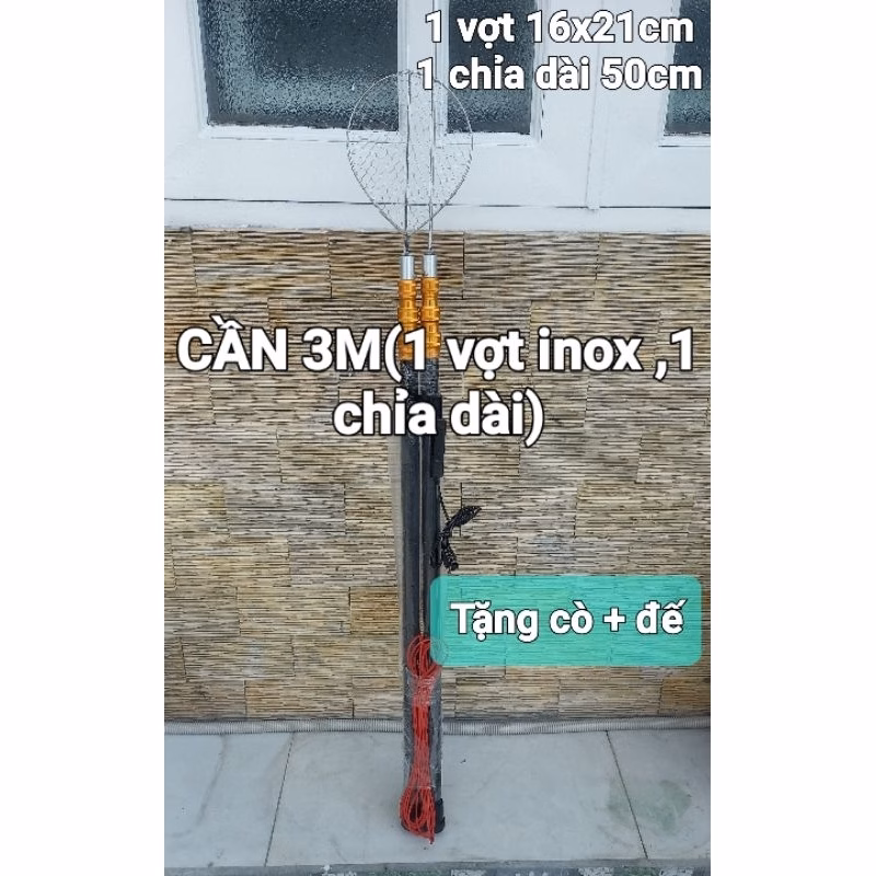 - CẦN VỢT 3M2 (1 vợt 16cm 1 chỉa dài ): Đây là một sản phẩm vợt cá cầm tay giá rẻ nhưng chất lượng tốt. Sản phẩm này có size vợt cá 16cm, dài 3m2, rất phù hợp cho người mới bắt đầu.